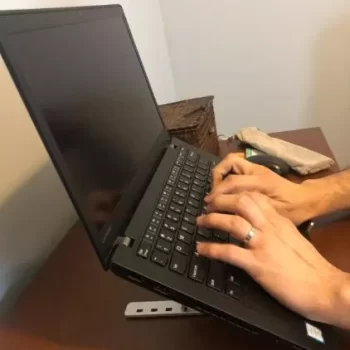 I looked at many different stands before purchasing this one. I use a thin 15″ laptop and was primarily concerned that the front hooks would come in the way of the wrist resting on the palm rest. My other concern was that the laptop would wobble because the stand is small (which helps because it fits easily in the side pocket of a book bag).