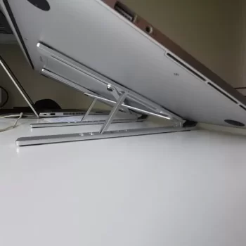 I really like how durable and simplistic this is. It weighs almost about nothing it comes in a cute gray pouch. There's no parts to assemble it's durable Its made of metal. You can use it for more than just your laptop. It works well with a tablet, a book, and I'm sure you can even use it for landscape mode for a phone, you don't have to open it all the way for it to work. It's very versatile and definitely a must-have for trying to ventilate a laptop and get a ton of more different types of uses at it while you're on the go or in the kitchen. Absolutely must buy!