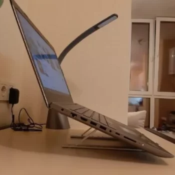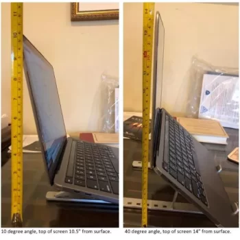 This is a pretty fancy laptop stand! Works very well, and is very handy. Unfortunately, I had to return it because I did not double check my desk dimensions before ordering it [not as much writing table space as I’d like if using this]. It is a good product, though, and if I had a larger table, I would buy this item again!