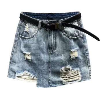 High Waist Ripped Denim Mini Skirt – Raw Edge Sexy A-Line for Spring/Summer 2023