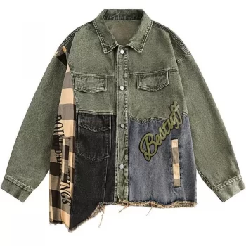 2023 Vintage Plaid Patchwork Denim Jacket – Streetwear Hip Hop Fashion