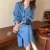 Made from a harmonious blend of cotton and polyester, this dress provides both the durability of denim and the comfort of soft fabric. Its full-length sleeves and mid-calf drop are ideal for those crisp spring days, offering just the right amount of coverage. A neat turn-down collar and a sleek, single-breasted closure add a touch of professionalism to your casual look. With its A-line silhouette, the dress accentuates your waistline, creating an empire effect that’s both slimming and stylish.