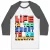 features raglan 3/4 sleeves and a modern fit that is perfect for a day