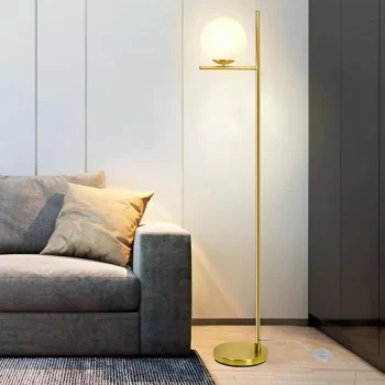 Elegant 9W LED Frosted Glass Globe Floor Lamp with Gold Finish