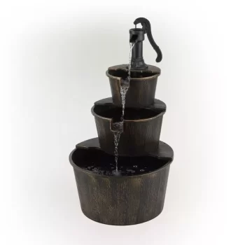 Rustic Charm 40″ Three-Tier Barrel Water Fountain for Outdoor Decor
