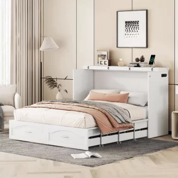 Transformable Queen/Full Size Murphy Wall Bed with Drawers, Sockets & USB Ports