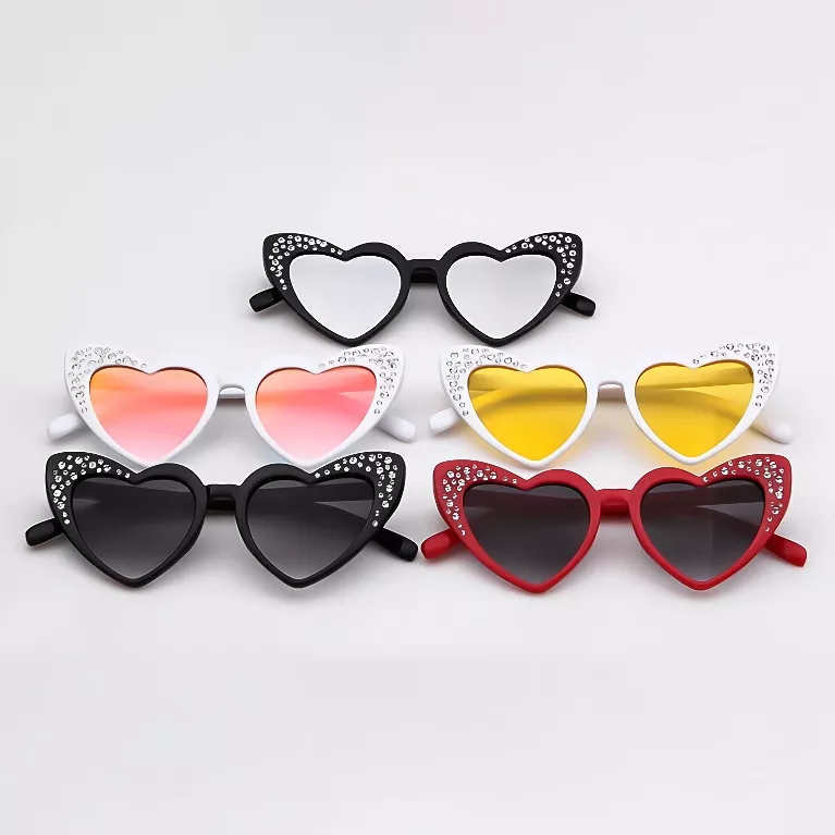 Introducing the ultimate statement piece for your little one’s wardrobe: Vintage Heart-Shaped Diamond Sunglasses designed specifically for girls. These sunglasses blend timeless retro charm with a modern twist, ensuring your child stands out with style and confidence. Crafted with care, they offer not just fashion but functional protection against the sun’s rays.